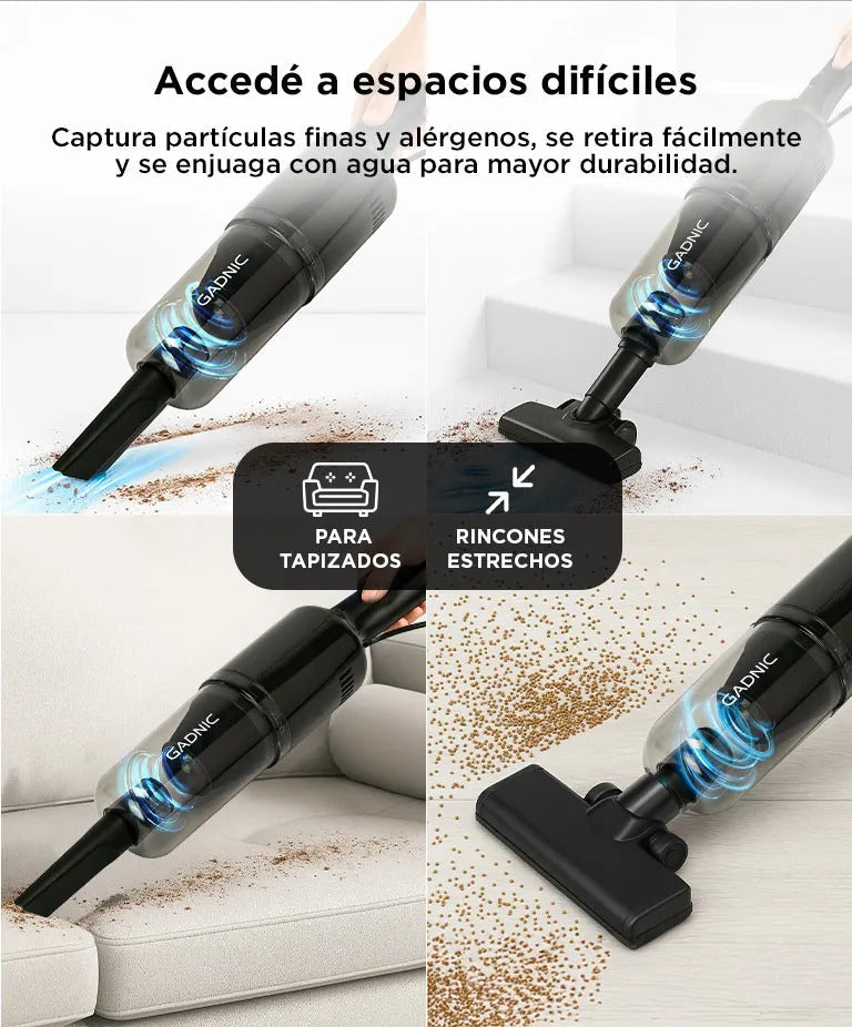 Perfecta para mantener tu hogar limpio y ordenado, alcanzando superficies bajas, rincones altos, tapizados y espacios pequeños con comodidad.