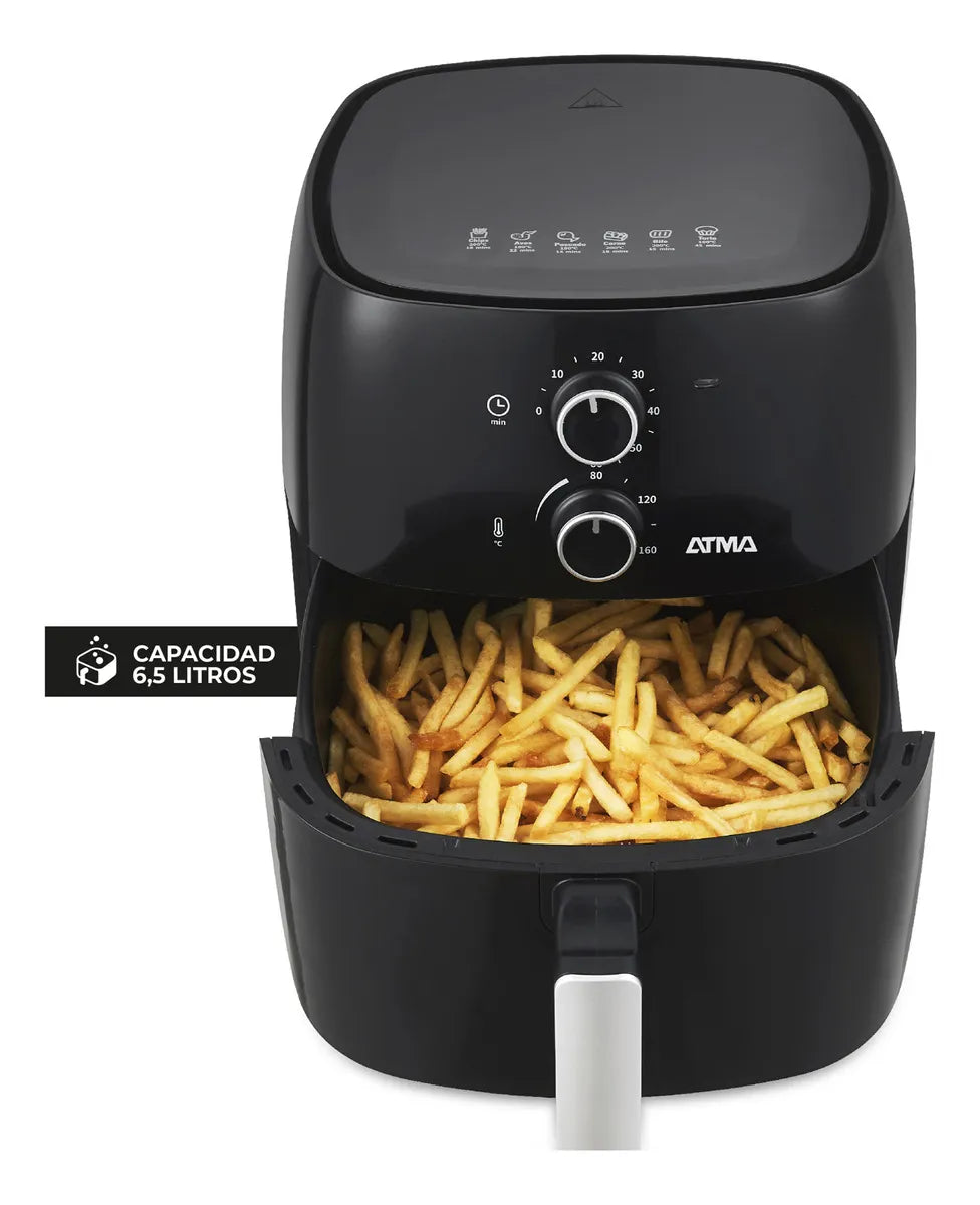La Freidora de Aire ATMA FR60MABP ofrece cocción rápida y saludable con 1300 W de potencia y capacidad de 6,5 L (ideal para 5–7 porciones). Cocina con hasta 90% menos aceite, logrando crocancia uniforme gracias al flujo de aire caliente de alta velocidad.
