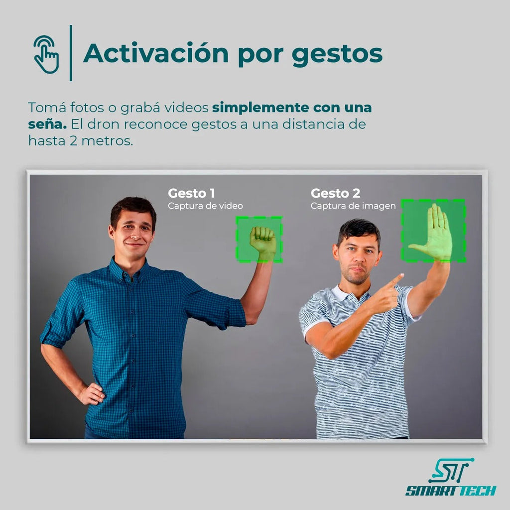✔ Funciones inteligentes: despegue/aterrizaje automático, giro 360°, control por gestos (según versión)