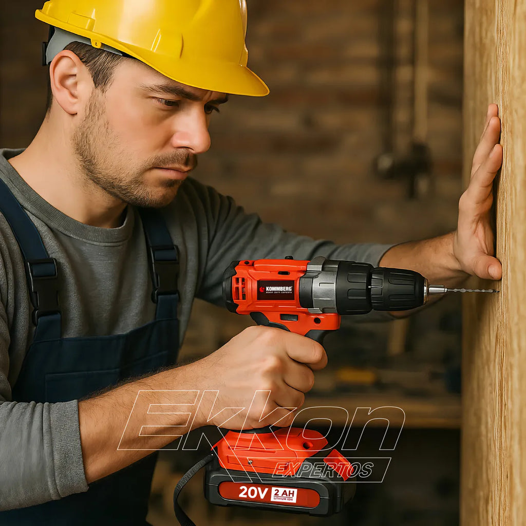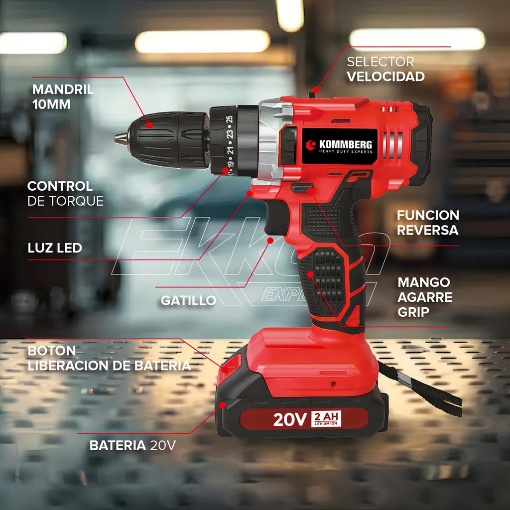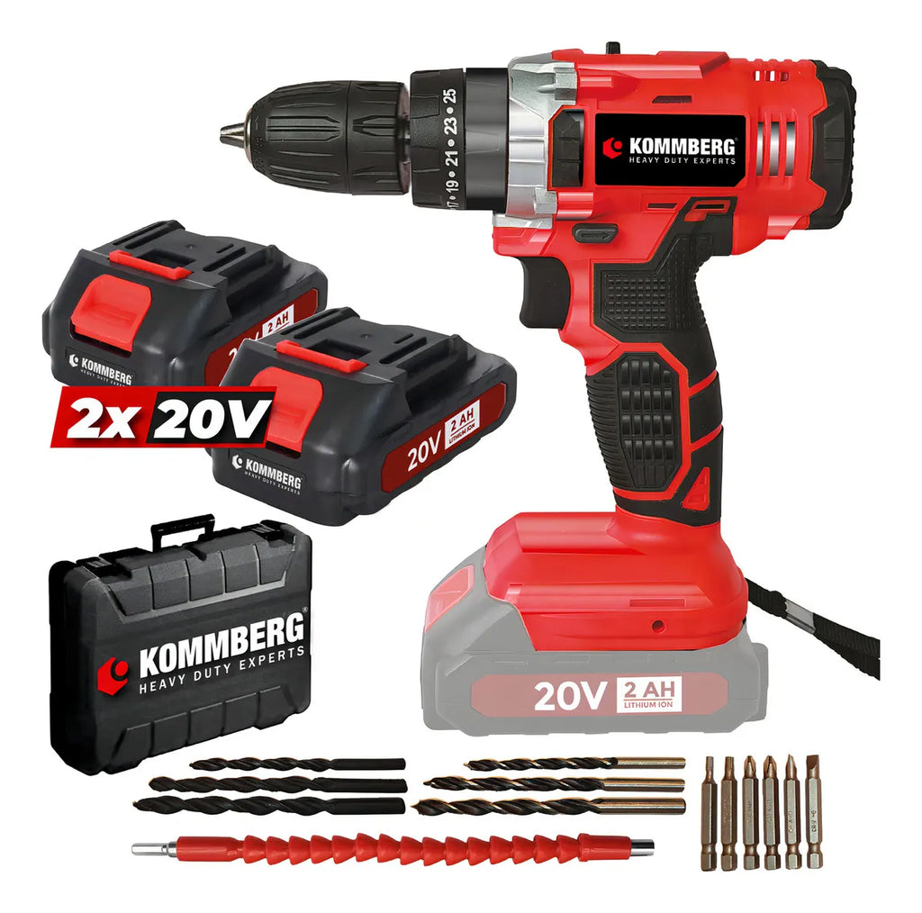 Taladro Percutor + 2 Baterias 20v Kommberg 13mm Maletin 2 Baterias, Cargador Y Accesorios Kb-tpb1020-2